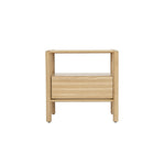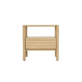 This compact nightstand features a single drawer and an open shelf, finished in elegant oak, providing an ideal solution for organizing your bedside necessities.