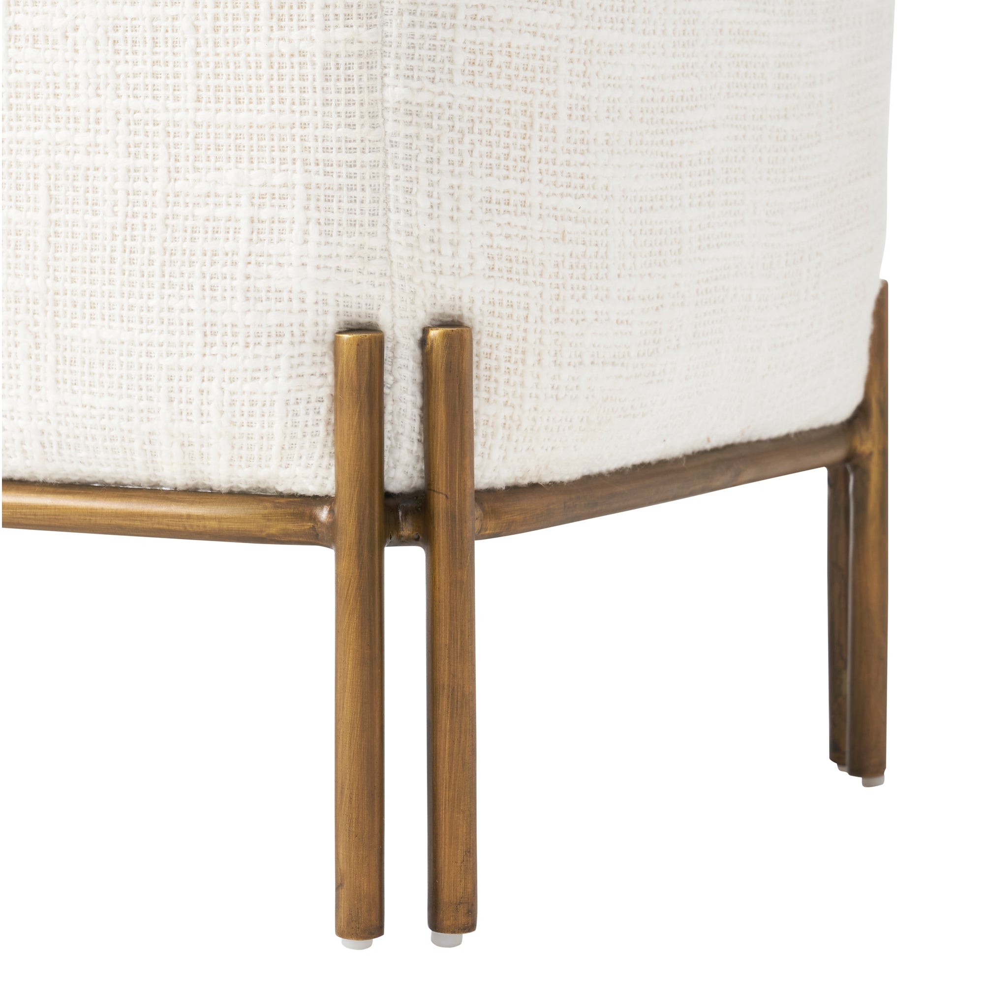 This elegant ivory bench adds a contemporary touch to minimalist or neutral interiors. Featuring a luxurious seat covered in ivory cotton twill and supported by slender legs with an antique brass finish, it lends a sophisticated feel to any room. Perfect for entryway seating, an ottoman, or placed at the foot of a bed to refresh your space with understated style.