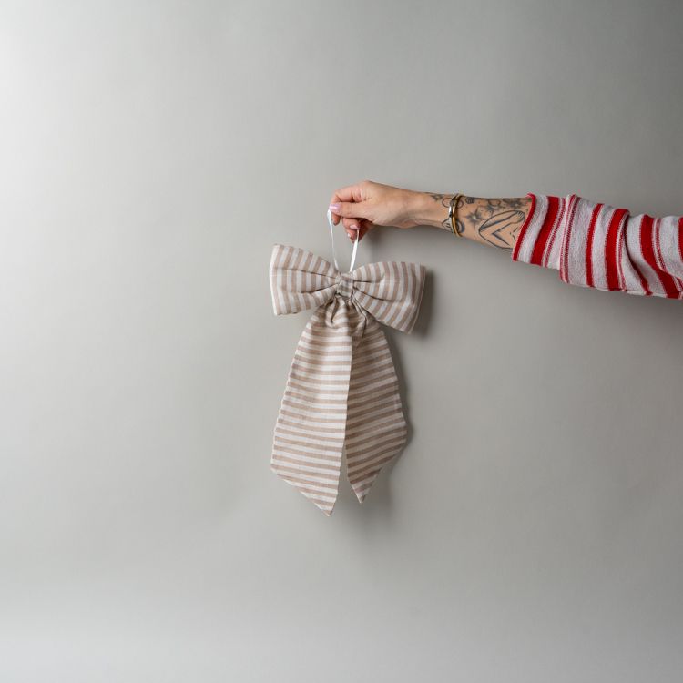 Crafted from soft, high-quality cotton and delicately finished with a silk ribbon centre, these charming bows add a touch of whimsy to any space. The classic stripe pattern creates an elegant yet playful accent perfect for nurseries, mantles, doorways, or seasonal decorations.