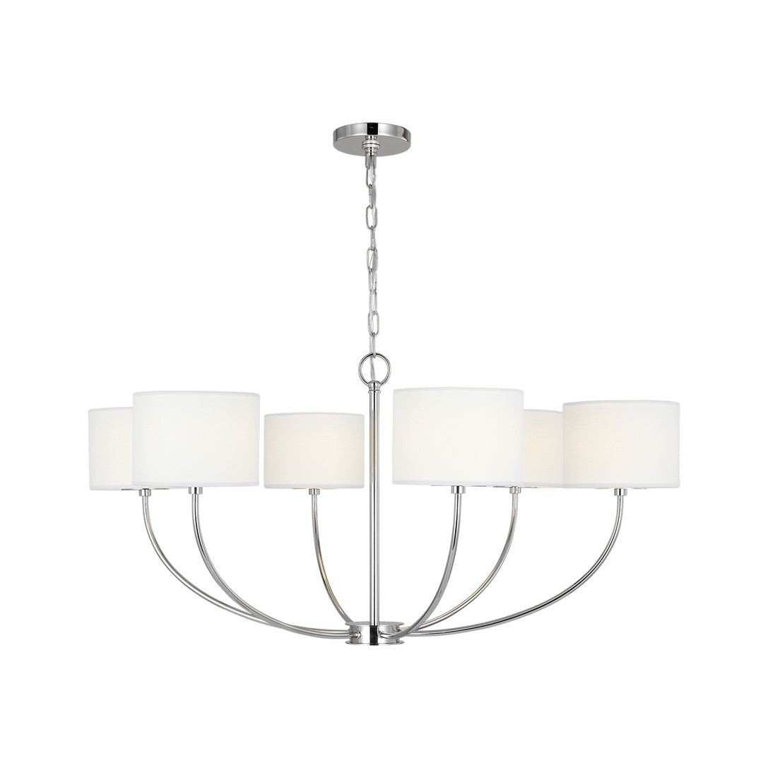 The Sawyer Medium Chandelier showcases elegantly curved arms that combine modern design with a transitional aesthetic, offering a sophisticated yet versatile lighting solution. Its white linen shades diffuse light gently, creating a warm and inviting atmosphere while complementing a variety of interior styles. Perfect for enhancing dining rooms, living areas, or entryways, this chandelier balances contemporary flair with classic appeal, making it a refined centerpiece for any space.