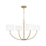 The Sawyer Small Chandelier features gracefully curved arms that blend modern design elements with a timeless transitional aesthetic, making it a versatile addition to various interior styles. Its white linen shades provide a soft, diffused light that enhances the ambiance while maintaining an elegant and refined appearance. This chandelier is ideal for adding subtle sophistication and balanced illumination to dining rooms, living spaces, or entryways.