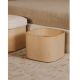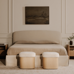 The Saxon Stool combines stylish simplicity and practical functionality. Its plush seat is upholstered in flecked oatmeal fabric and contrasts beautifully with the solid walnut veneer base. Lift the top to reveal discreet storage for added convenience. Its curved corners create a serene silhouette, making it a perfect addition to any space.