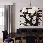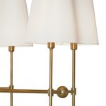 Add a touch of elegance to your dining room with the Seyah Chandelier. Featuring an optical illusion design and slender frame, this chandelier is sure to impress your guests. The off-white cotton shades and antique brass finish add a sophisticated touch. Perfect for creating a stunning focal point that guests can admire from below.