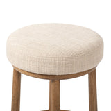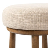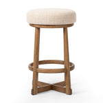 Perfectly sized for the counter, a 360-degree swivel stool pairs a warm oak frame with sand seating in a chunky basketweave. Tapered legs meet a crossed base ties it all together.