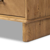 Bring a Nordic, material-driven look to your bedroom with a six-drawer dresser of grain-rich oak and drawer fronts covered with tan top-grain leather. Finished out with long, linear iron hardware.