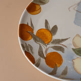This stoneware plate, adorned with a vibrant lemon and orange motif, offers versatile use as both a serving piece and a decorative accent. Crafted for durability, it’s perfect for presenting snacks or meals in style, or it can be hung on the wall to add a touch of artisanal charm to your space. Its detailed design complements a variety of interiors, making it a tasteful addition to your collection.