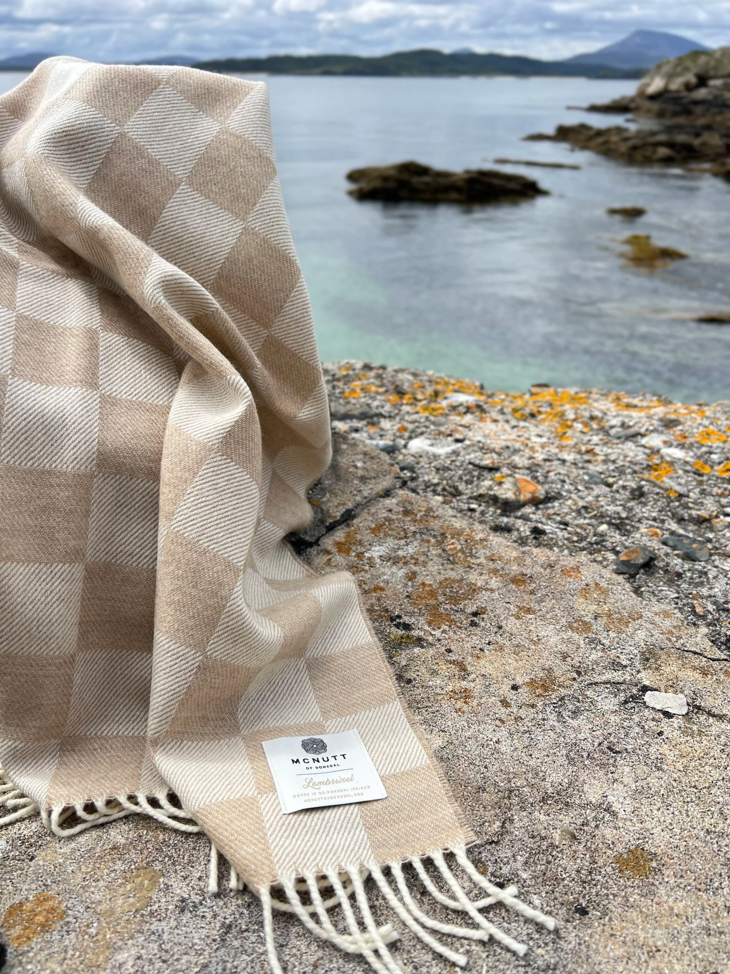 This blanket is made from the finest quality merino wool to produce the softest lambswool throw around. Its fibres are lighter than sheep’s wool making it incredibly soft to the touch, ideal for people with sensitive skin. This blanket features a chessboard check design in beige shades so it goes with every interior.