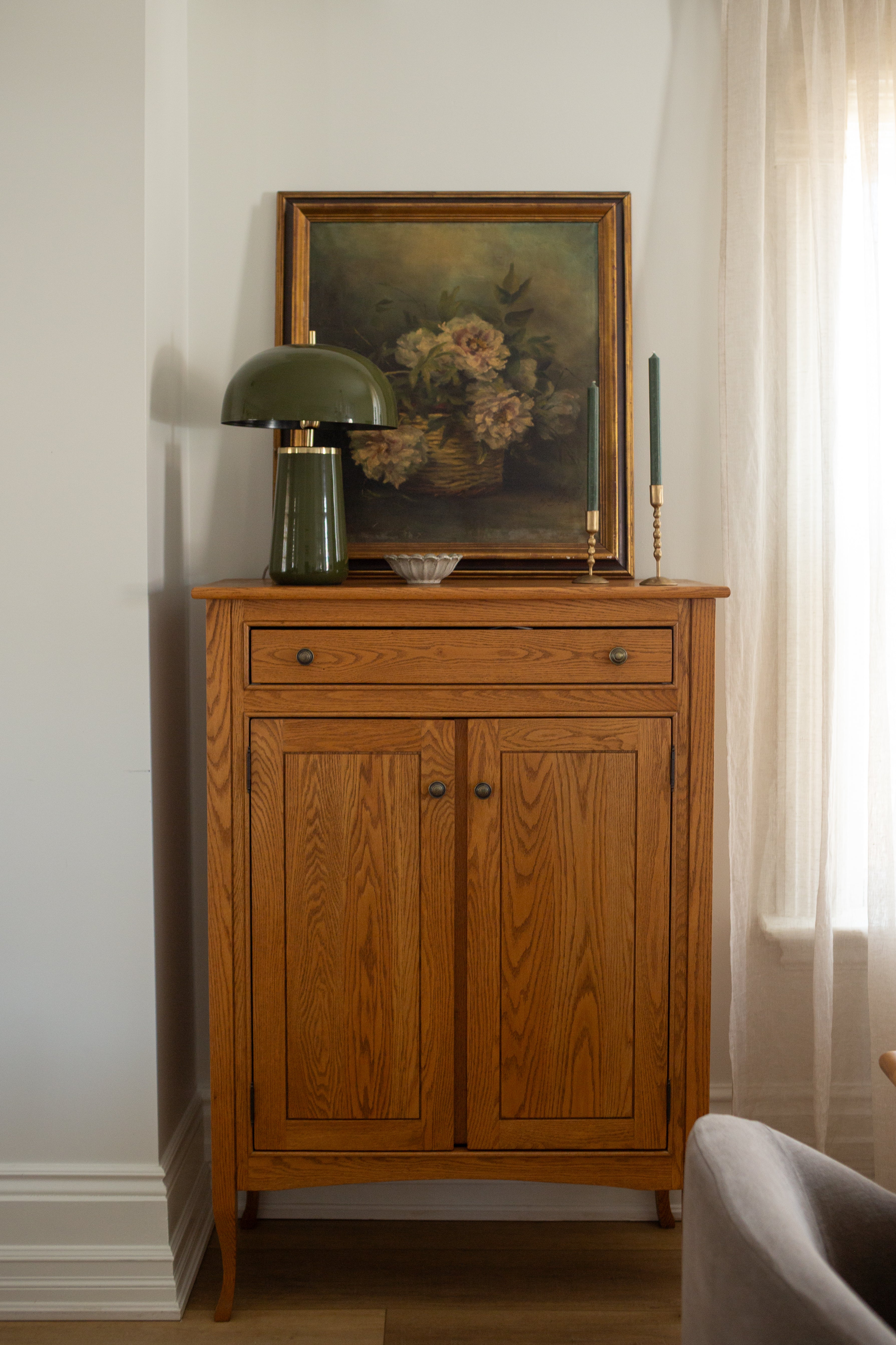 Elevate your decor with our hand-forged iron taper candle holders. Their antique brass finish and unique bauble detail add a touch of elegance to any space. Effortlessly display your taper candles and enjoy the warm, ambient lighting they provide.