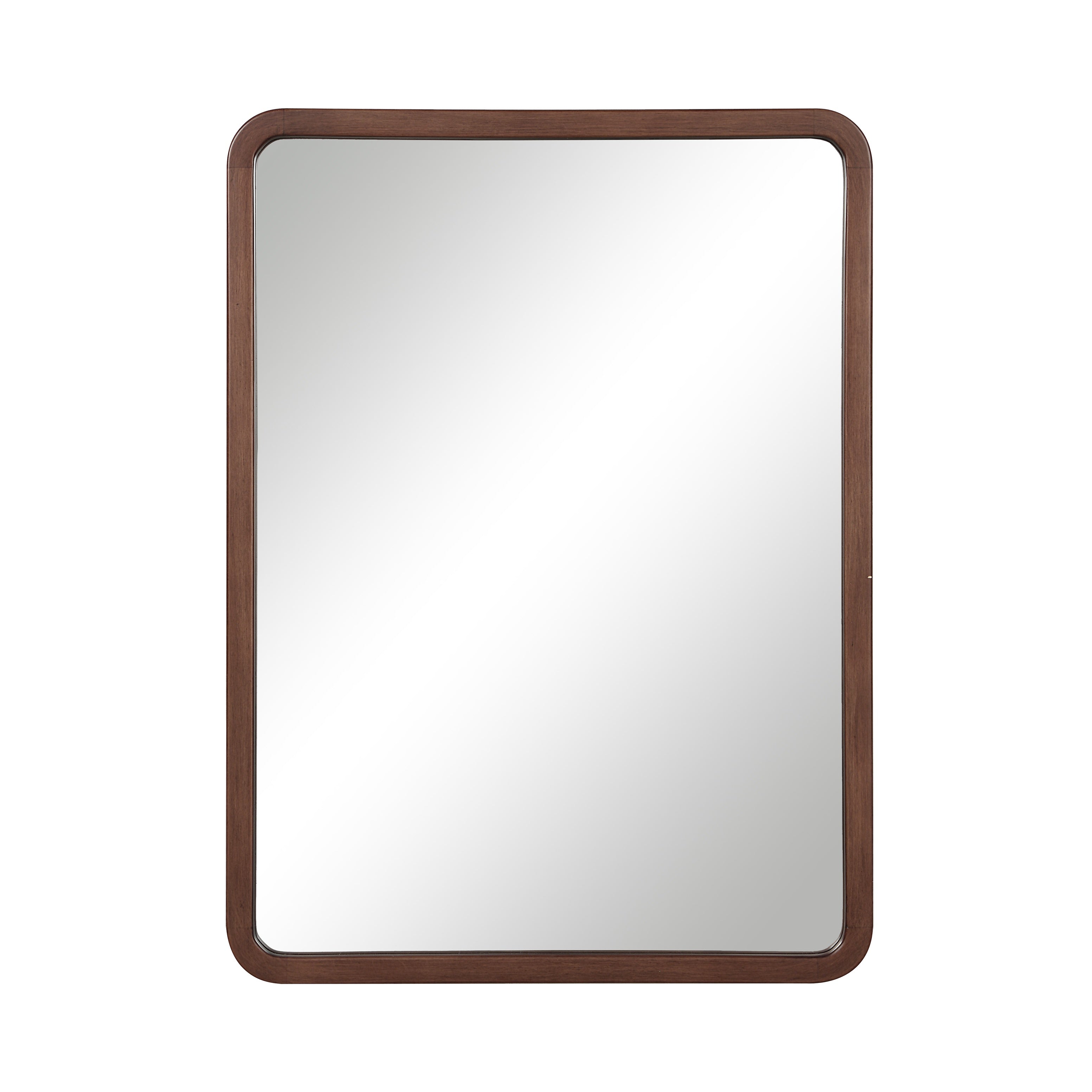 Designed with gently curved corners and a durable walnut-painted finish, this elegant wall mirror offers timeless charm suitable for any space. Its distortion-free glass ensures a flawless reflection, combining sophisticated style with practical function—ideal for a powder room, entryway, bedroom, or any area in need of a refined refresh.