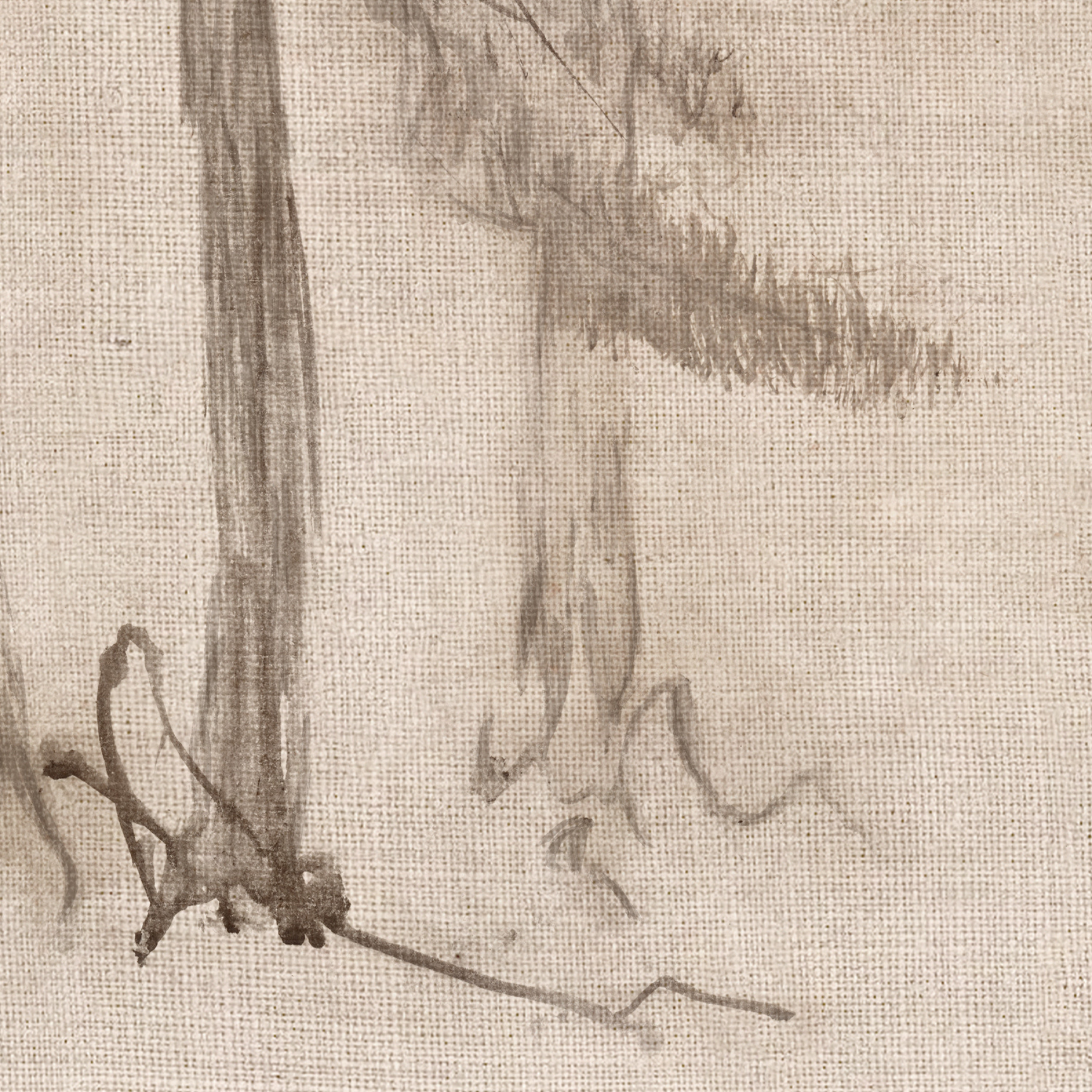 Enhance your space with "The Pines I" Framed Art Print. This forest sketch exudes a soft, dreamy quality with its fading lines and tones. The neutral linen texture background adds to its ephemeral feel, evoking a sense of forgotten memories. Available now for a timeless addition to your decor.