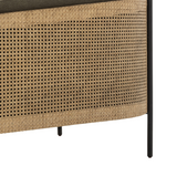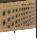 The Tobie Chair is a stylish and expertly crafted addition to any space. Upholstered in an olive flax/linen blend and accented with natural rattan, this texture-driven chair exudes a modern, on-trend style. Its linear iron legs finished in gunmetal provide a sleek complement to its overall design.