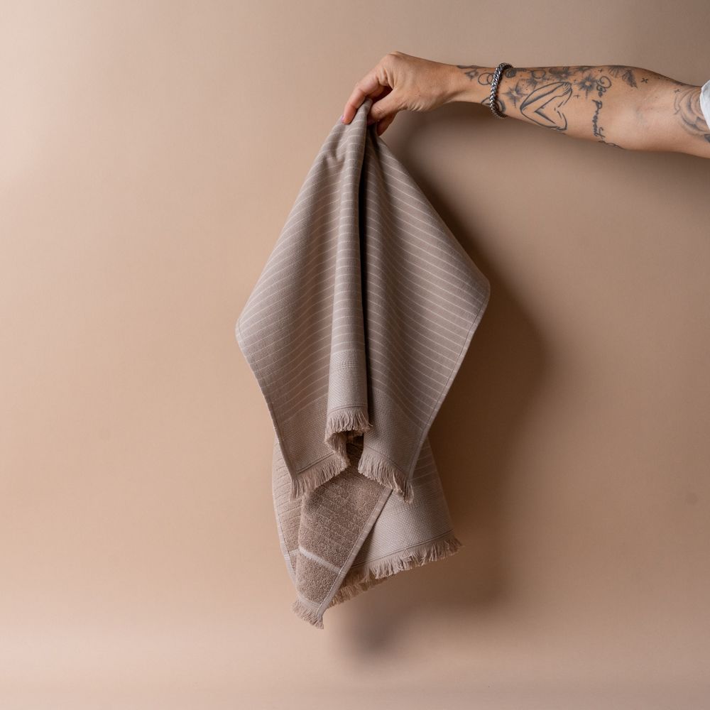 Turkish Cotton Striped Hand Towel hand towel Pokoloko Brown