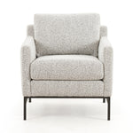 Plush and modern-minded. Atop an airy, black-finished iron base, thick, boucle-like upholstery features clean, angular track arms and comfy cushioning, for the best of both worlds.