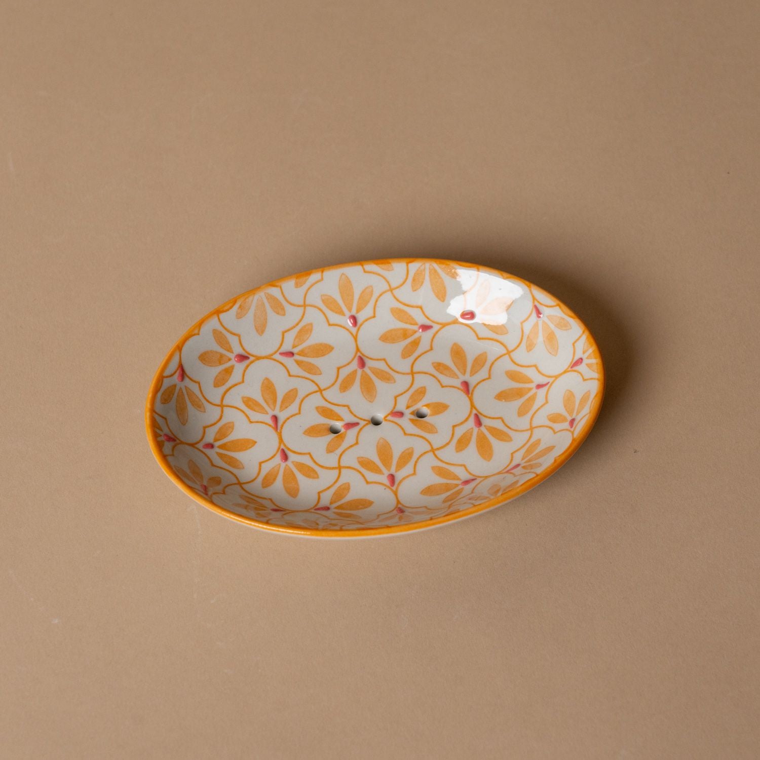 Hand-stamped with a curved edge, this soap dish is both elegant and functional. Drainage holes prevent soap from sticking and allow for proper water runoff. The perfect accessory to add a pop of colour to your kitchen or bathroom.